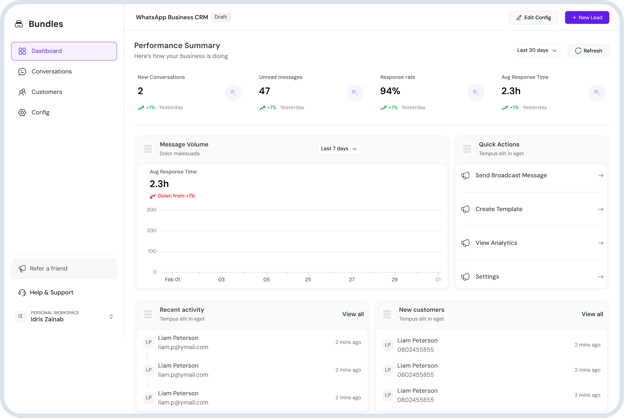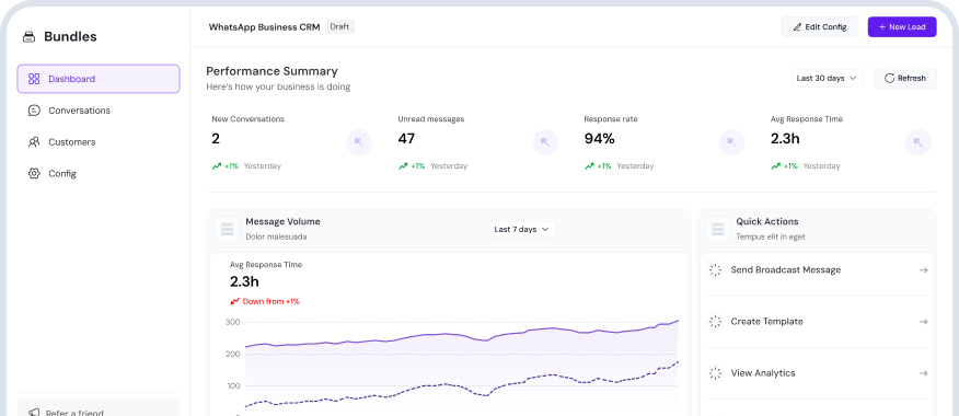 Manage leads, chats, and follow-ups — all from WhatsApp